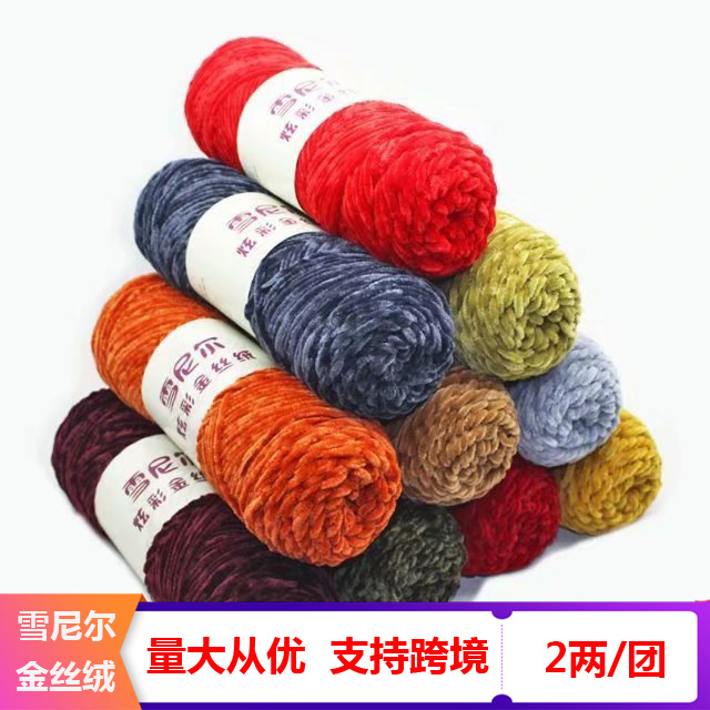 シェニールの金のベルベットの糸は靴の糸の金のベルベットの糸の全ポリエステルの光沢のあるベルベットの糸の手作りの毛糸の卸売りです。