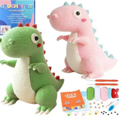 クロスボーダーDIYかぎ針編み人形材料バッグ手作り糸粉緑恐竜材料バッグ置物ペンダント