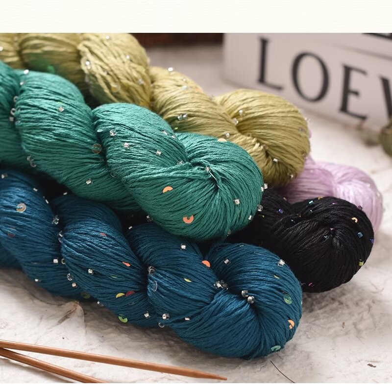 テンセルカラフルなガラスビーズスパンコール糸 100 グラム糸手編みかぎ針編み帽子スカーフコート糸卸売