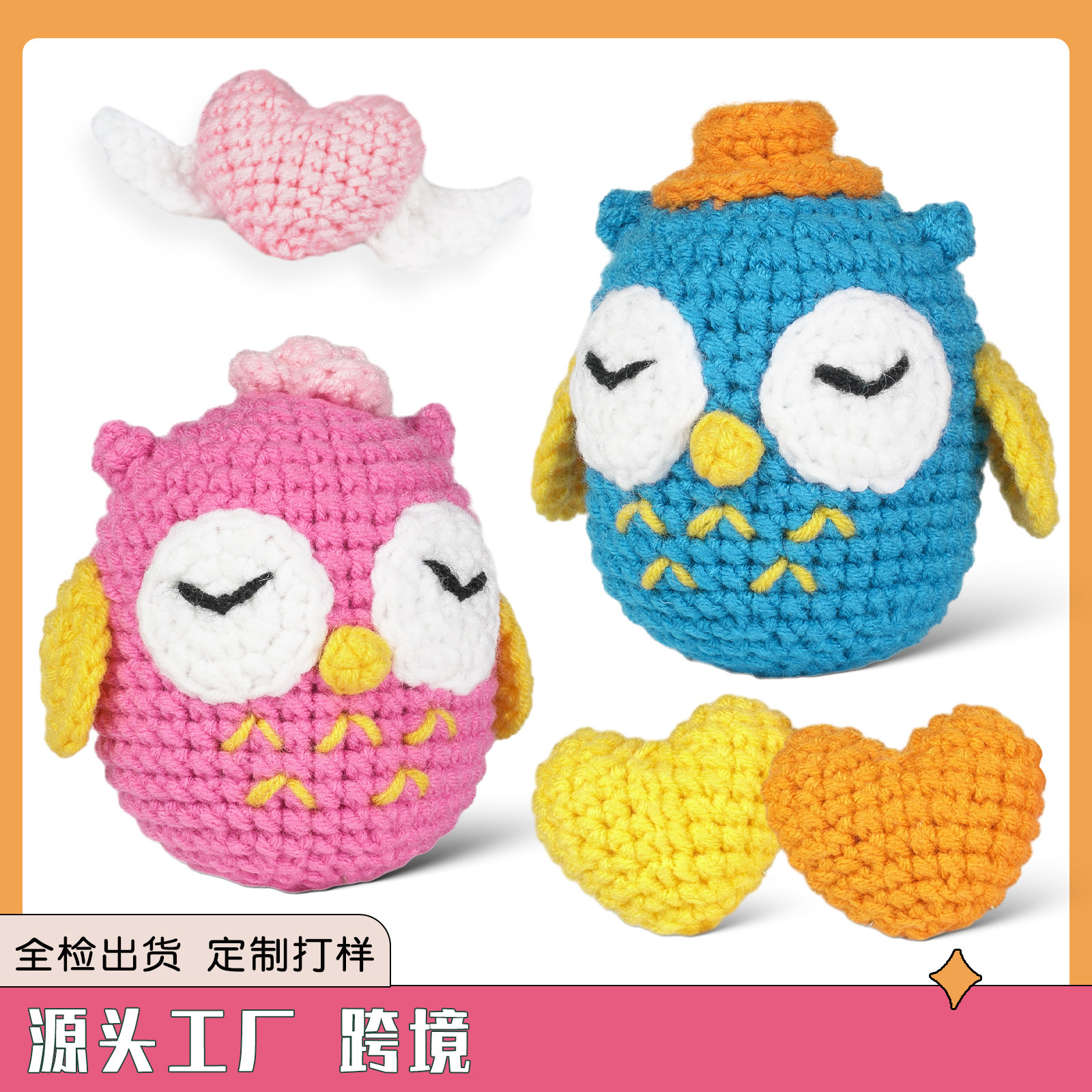 アマゾンの新商品の英語説明書のかぎ針の材料は人形を包んで手作りのdiyを編んでフクロウのピンクの青を作ります。