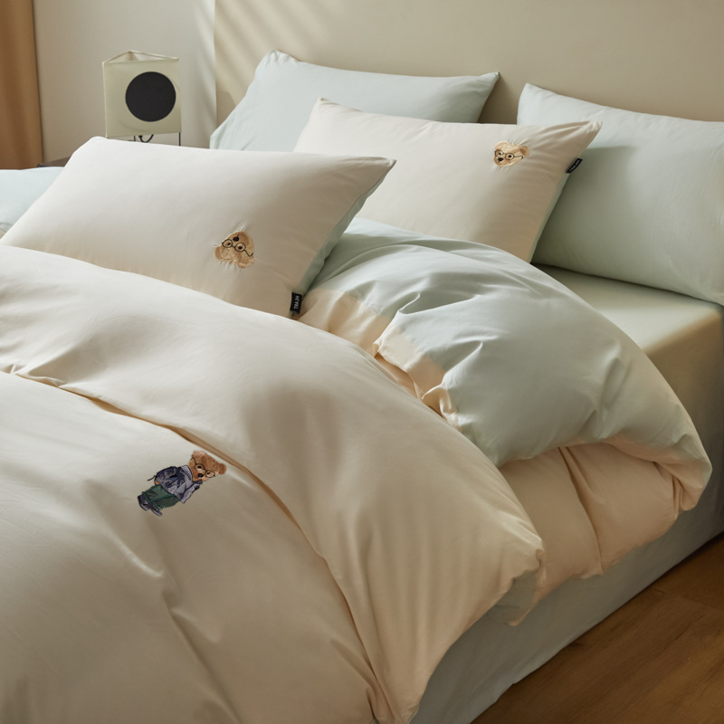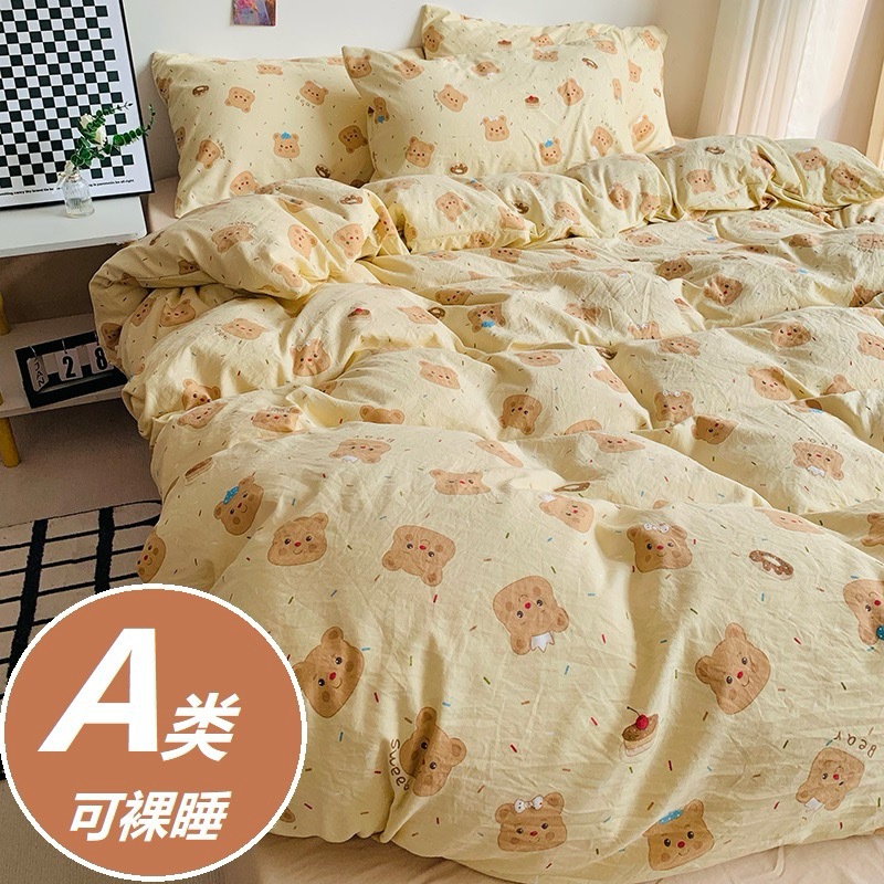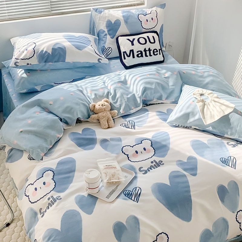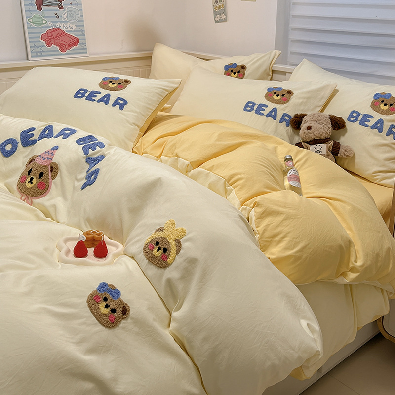 Ins風熊熊100% 純水洗綿四点セット小清新ベッド布団セット学生寮シーツ三点セット4