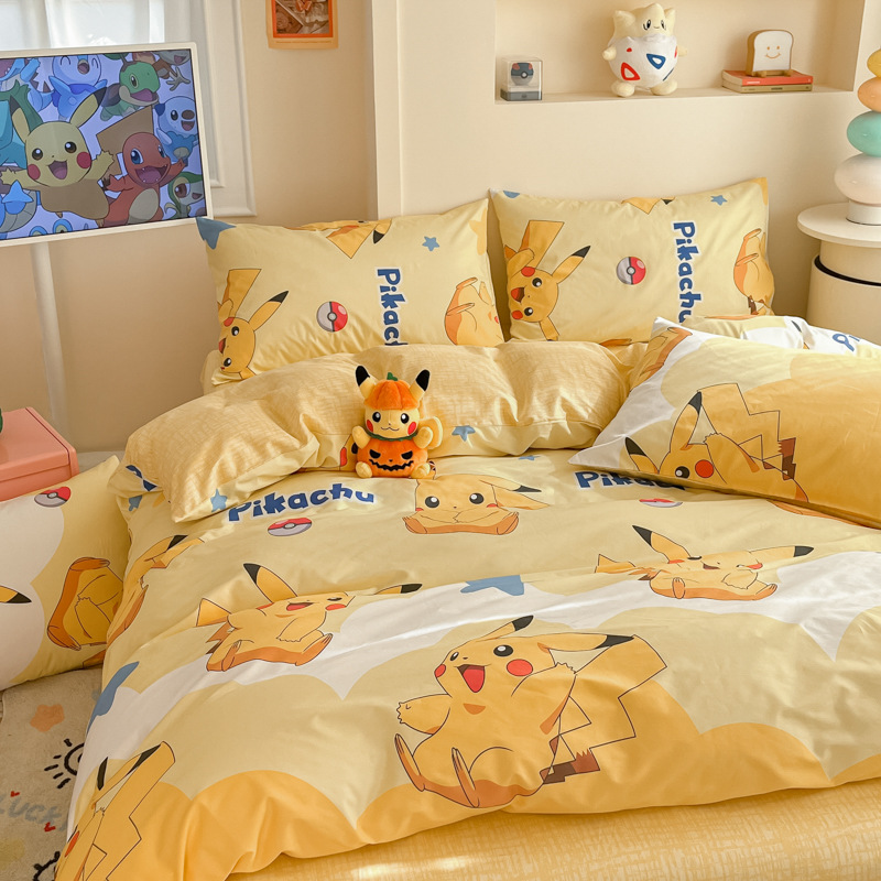 宝可夢ピカチュウ純綿四点セット純綿ベッドシーツ子供三点セットかわいいアニメ秋冬