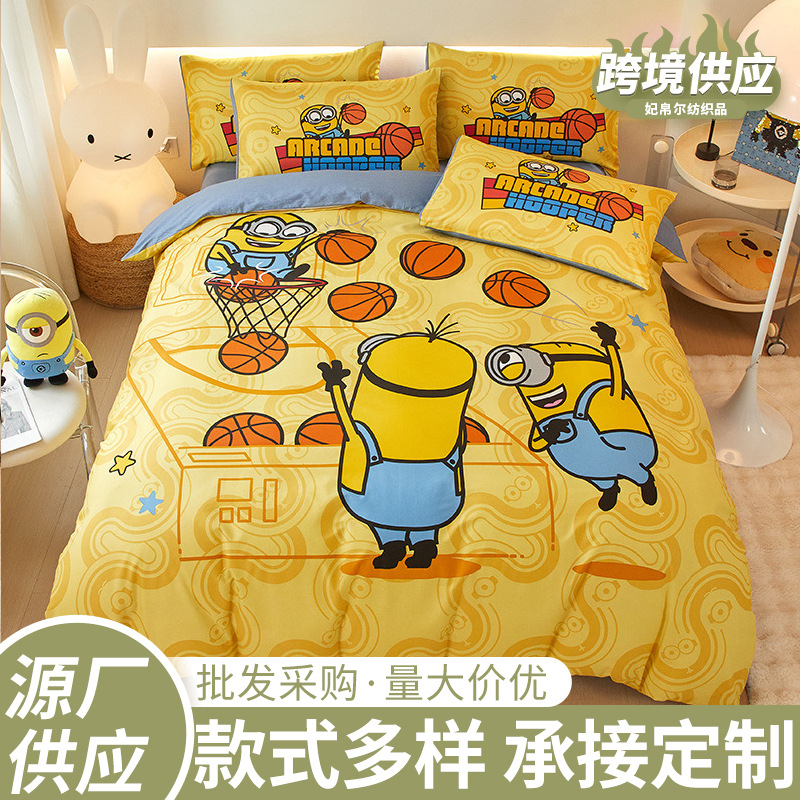 小黄人ピカチュウベッド4点セット冬の子供布団シーツ可達鴨厚手ベッド4点セット