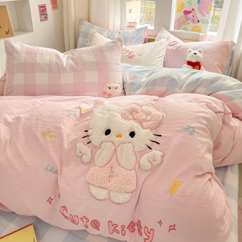 かわいいkt猫水洗浄綿ベッド4点セット水洗浄綿少女心布団シーツ人寮3点セット