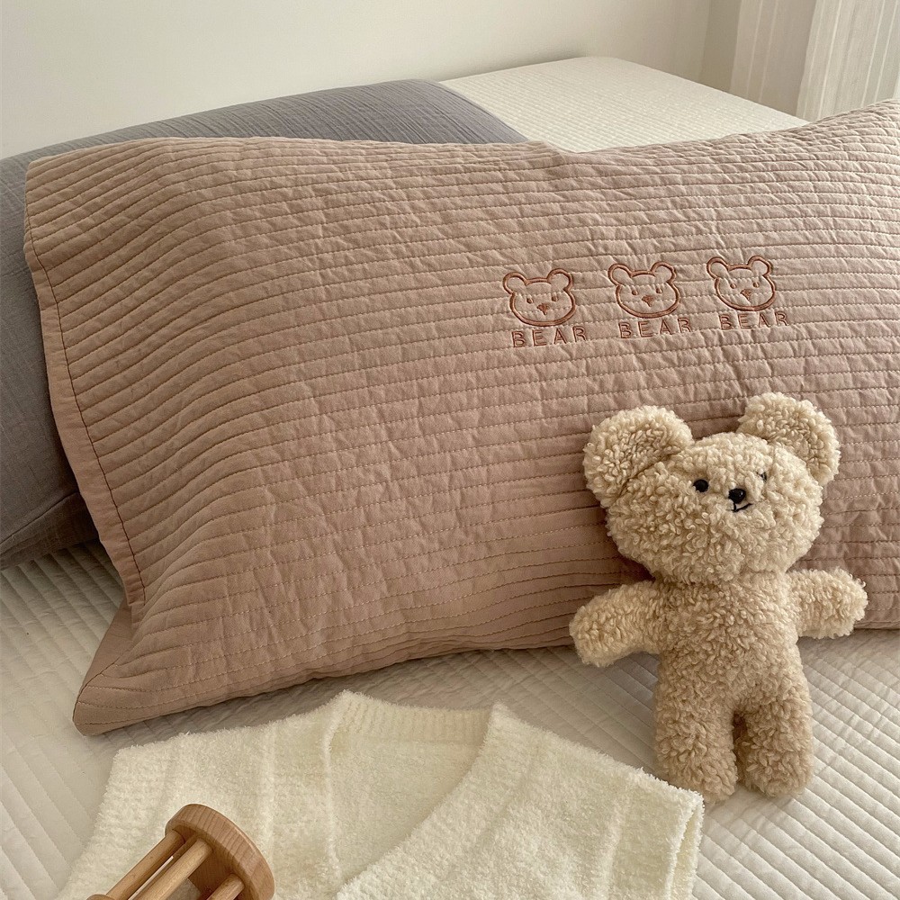 Ins韓系純綿可愛い熊刺繍枕カバー柔らかい通気性もあります。