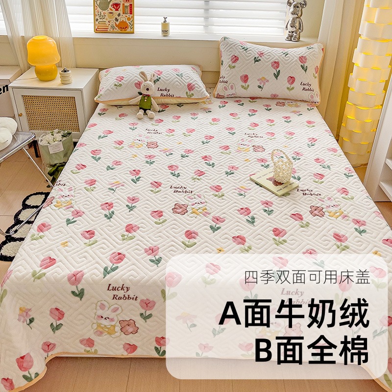 クラスA母子ins風純綿ベッドカバー3点セット純色牛乳ベルベット綿入り厚手プリントシーツ四季タイプ