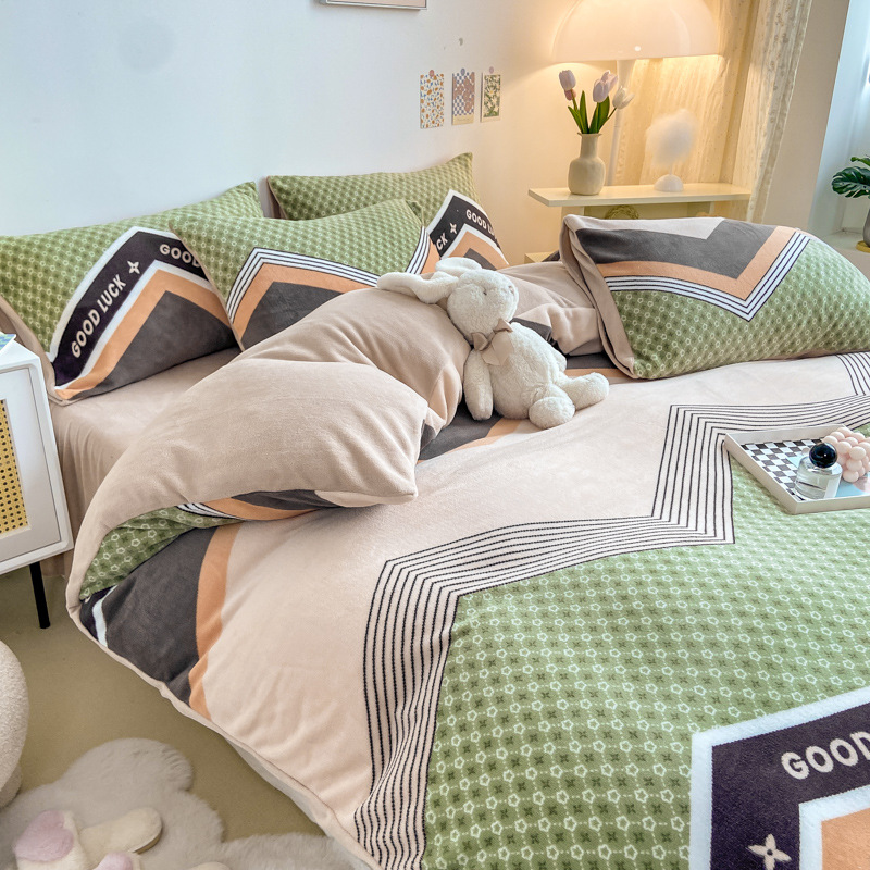 2024新型牛乳の毛のプリントの4つのセットの秋冬の厚い2人の学生の寮のカバーの生放送の起爆金
