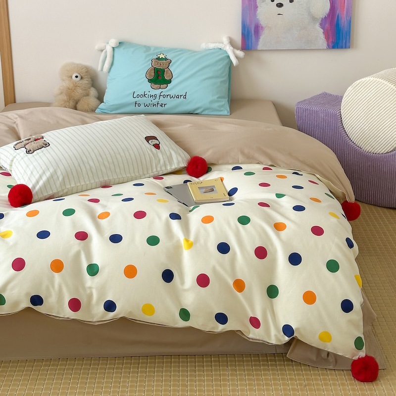 ドーパミンアニメの波点熊刺繍綿100% 水洗い綿4点セット綿100% 布団シーツ寝具