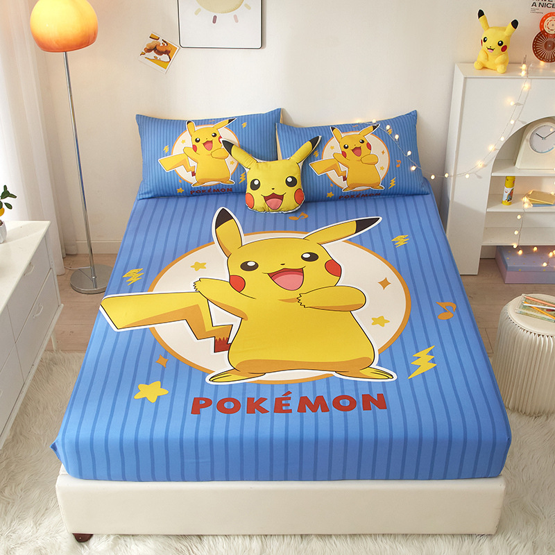 ピカチュウ純綿シーツ三点セット子供用アニメ純綿寮ベッドカバーマットレス保護カバー防塵カバー