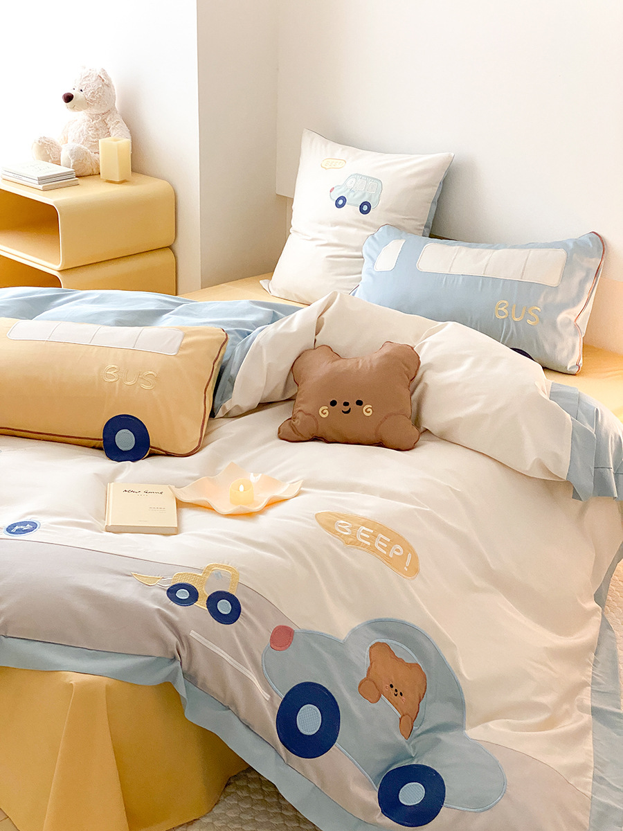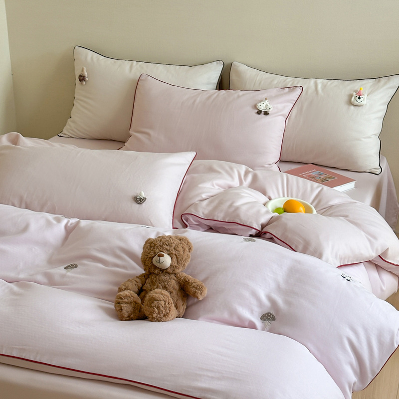 小清新純綿50本水洗い綿4点セット熊刺繍布団シーツ純綿1.8m寝具