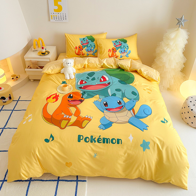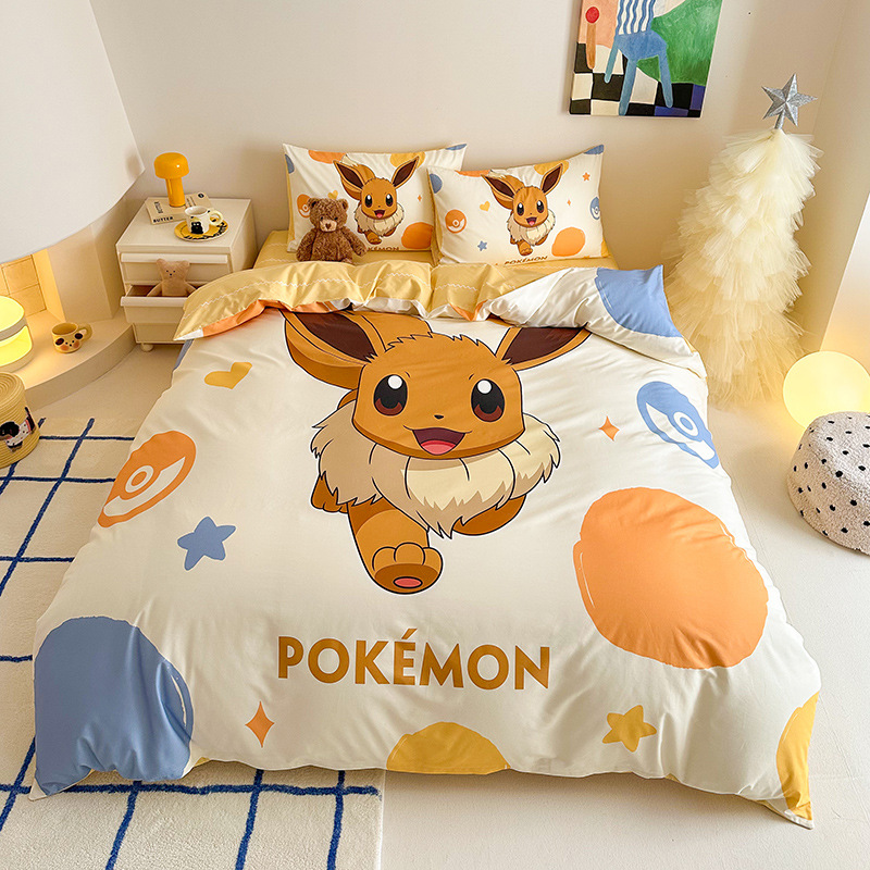 伊布棉四点セット児童アニメ三点セットベッド笠寮少年ベッド用品ピカチュウ純綿