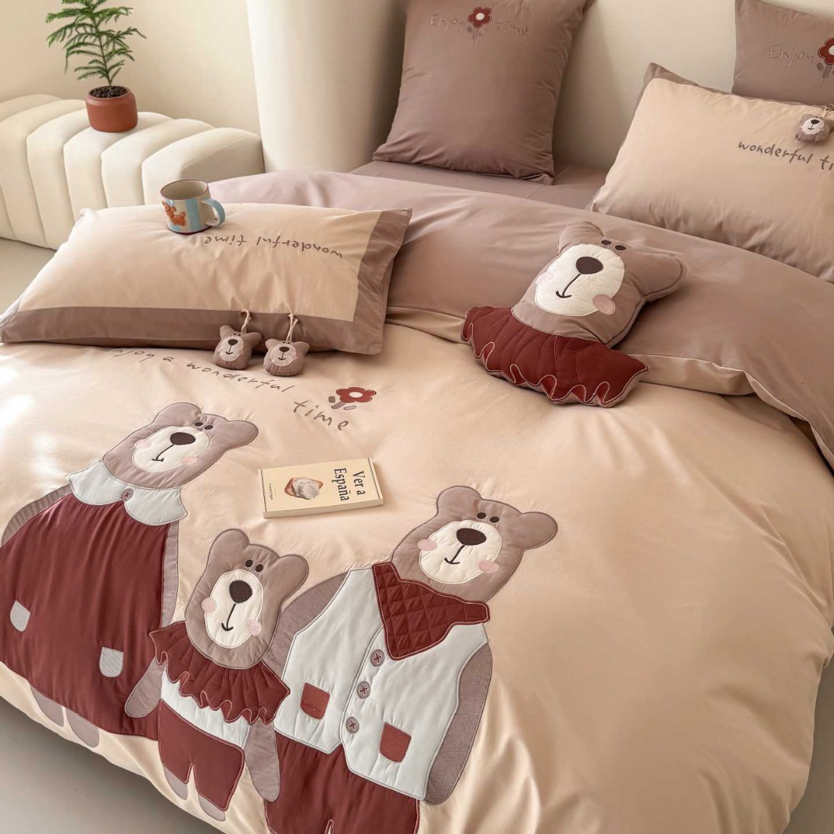 かわいいアニメins小樹熊刺繍綿100% 水洗い綿4点セット純綿布団シーツ寮3点セット