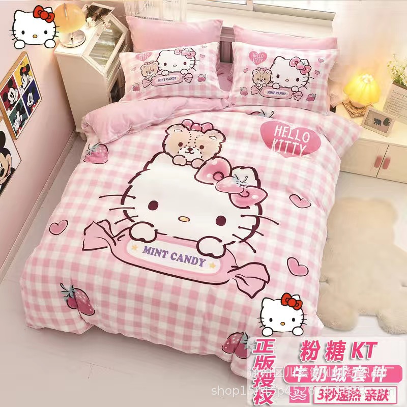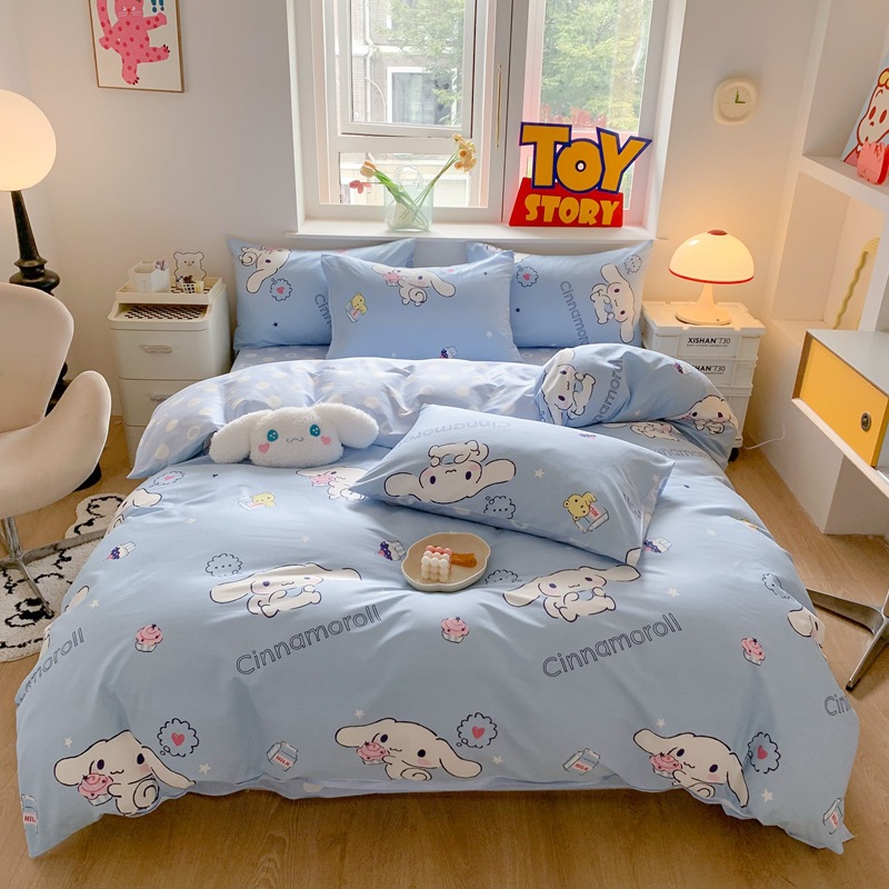 サンリオ コットン漫画プリント 4点セット かわいい KT猫 クロミ 純綿掛け布団カバー 寮用ボックスシーツ 3点セット