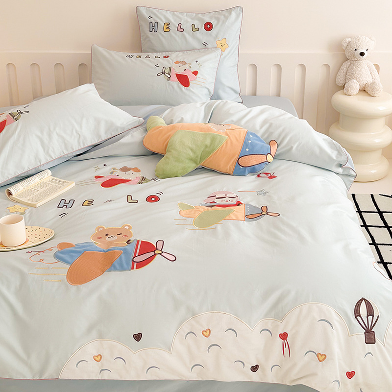 綿100本綿長絨毛綿4点セット純綿男の子布団カバー3点セットかわいい飛行機ベッド用品