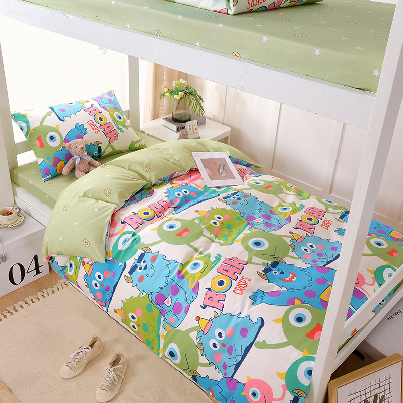 漫画クマ寝具 3 点セットキルトカバー 4 点セットシングル学生寮ベッドシーツ