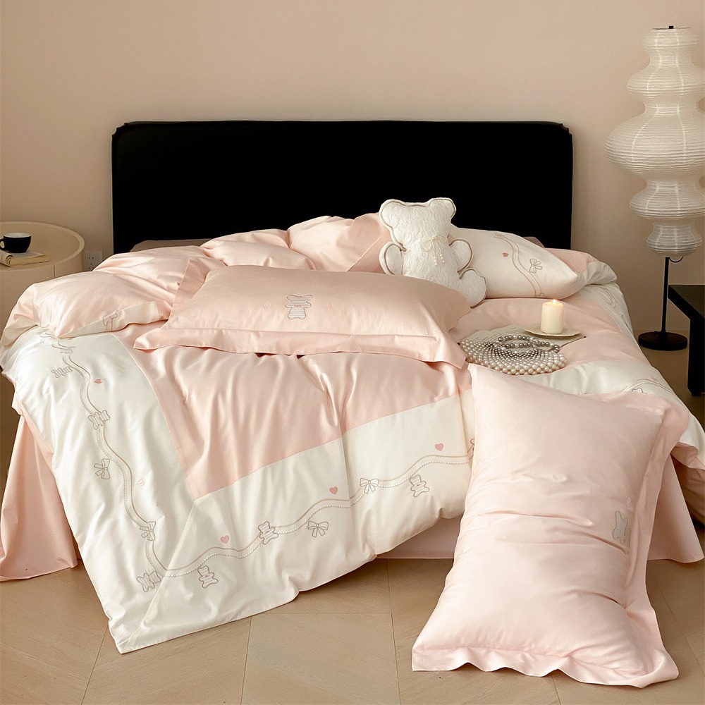 ネットレッドins純綿ベッド4点セット刺繍軽贅沢高級感布団カバー熊ベッドシーツ3点セットベッド笠4