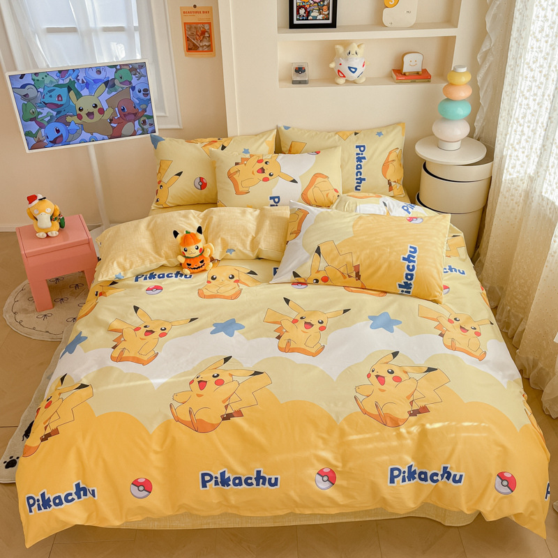 宝可夢純綿アニメプリント四点セットかわいい子供ピカチュウ純綿カバー学生三点セットクロスボーダー