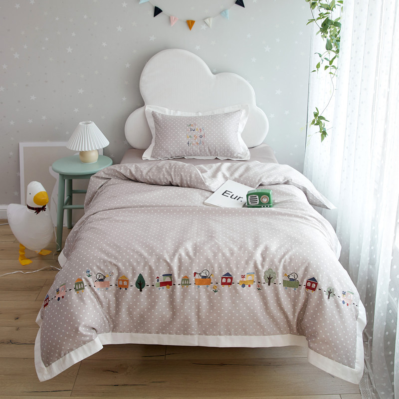 A類綿綿長絨毛綿功サテン点小汽車純綿ins風子供赤ちゃん一人布団カバー三点セット