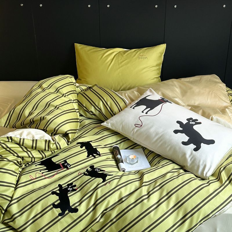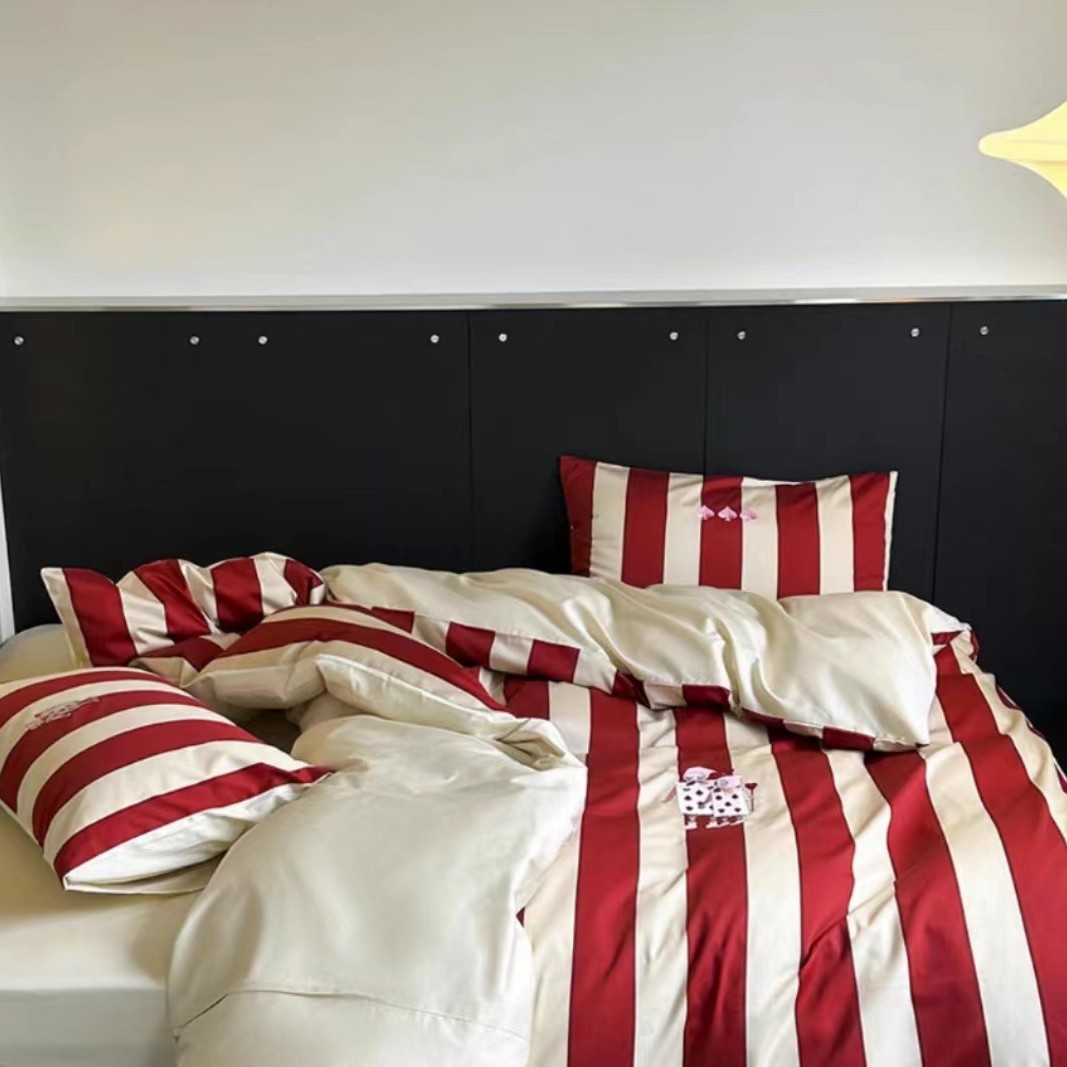Stripe | トランプさん刺繍ベッド4点セット純綿シーツストライプ布団カバー新型ins2024