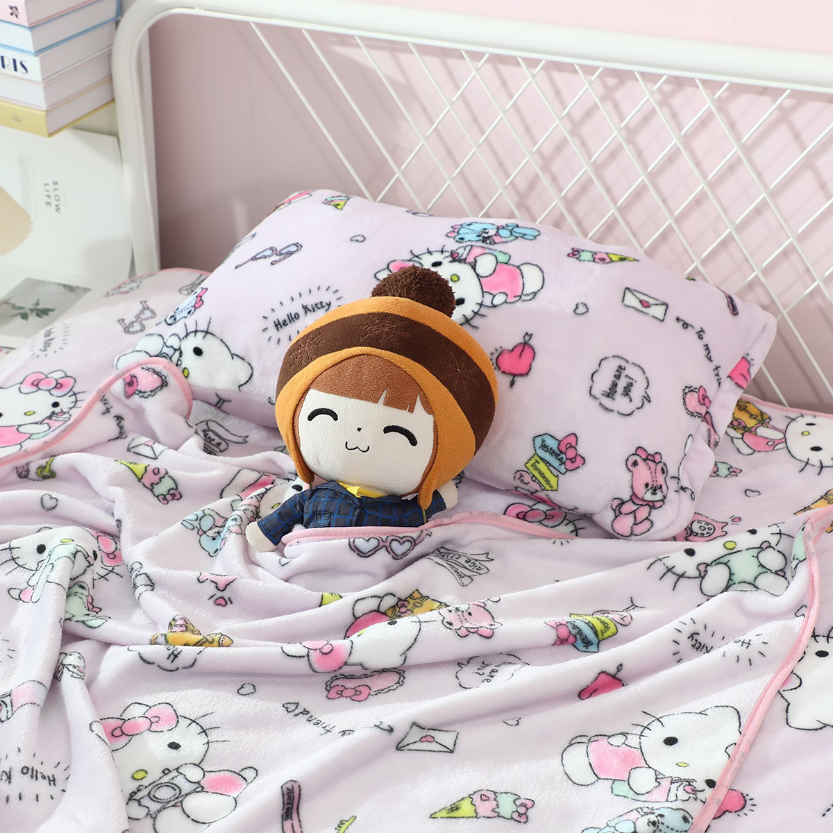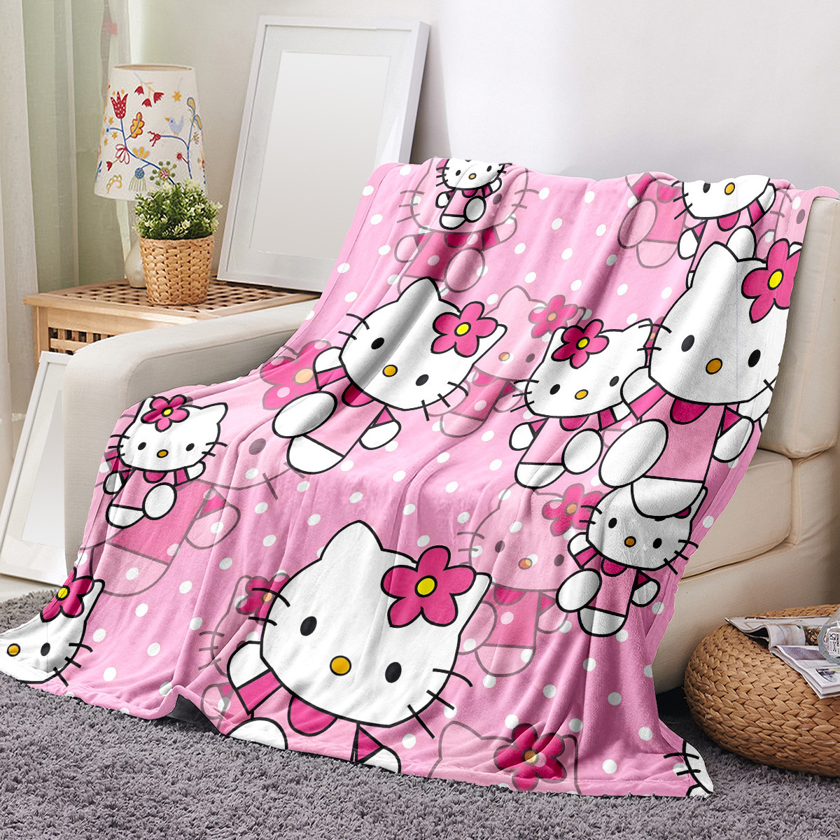 メーカー新製品 KT 猫漫画プリントブランケットサンリオフランネルブランケット子供用昼休みブランケット写真でカスタマイズ可能