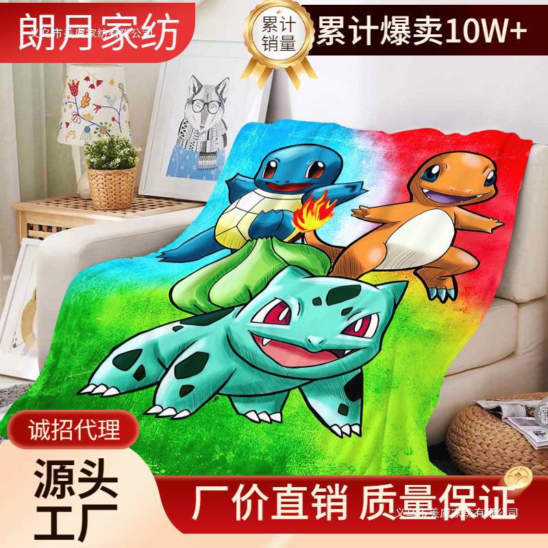 工場直送プリントフランネルベッドブランケット、厚手ブランケット、エアコンブランケット、ベビーブランケット、ピカチュウ漫画風を写真でカスタマイズできます