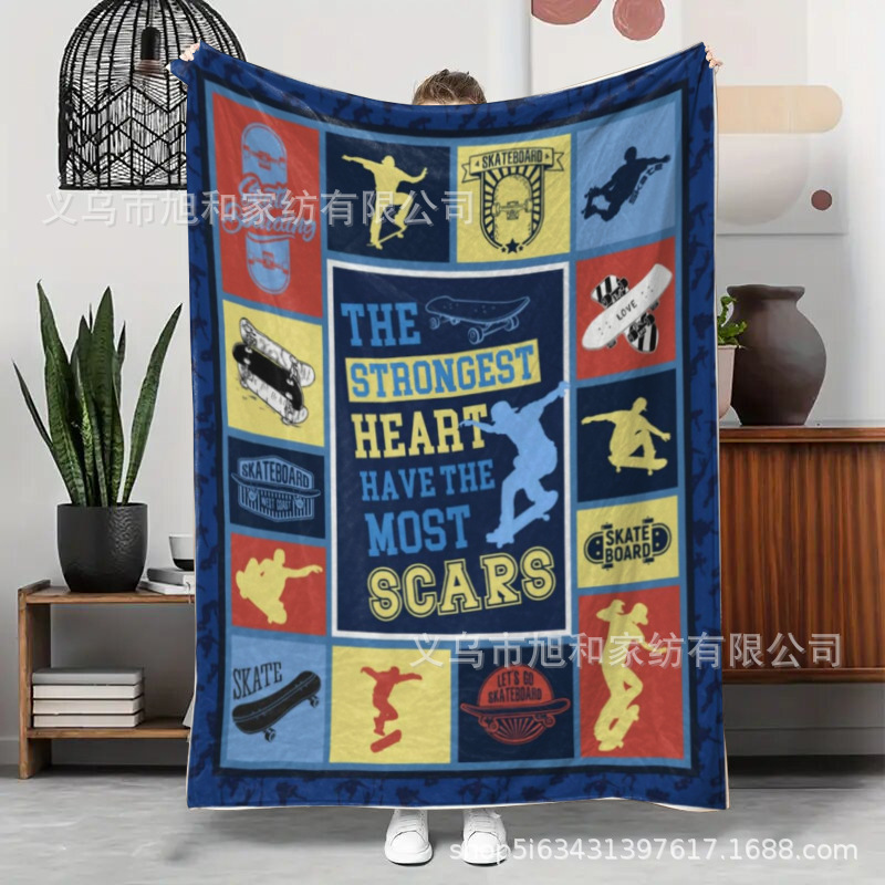 スケートボードパズルパーソナライズされたスポーツプリントフランネルスローブランケットホームレジャー暖かいスローブランケット寝具