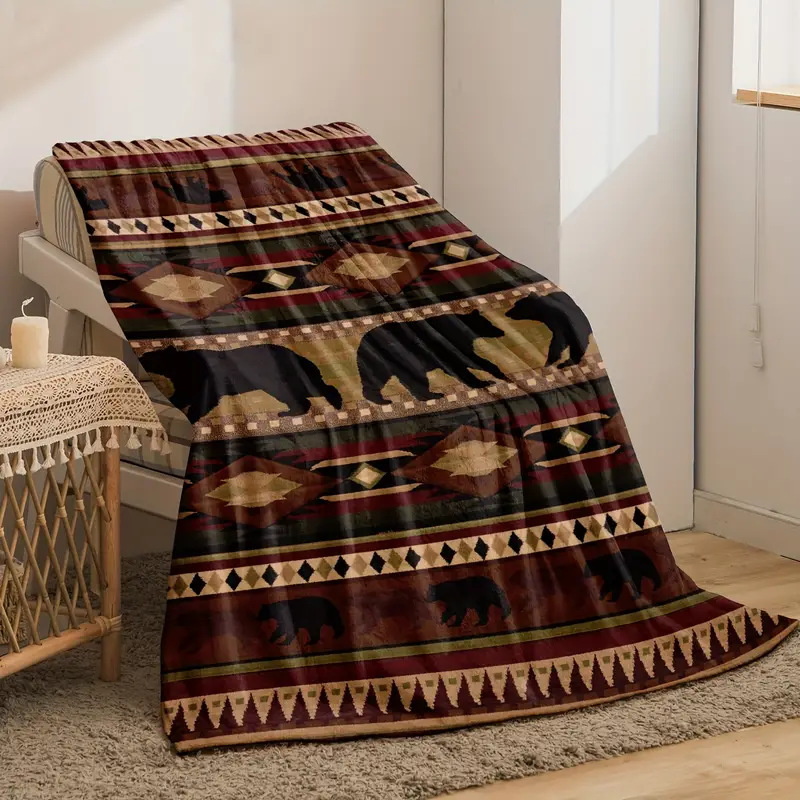 国境を越えたレトロな民族風熊プリント毛布休日フランネル毛布冬保温ソファー装飾毛布