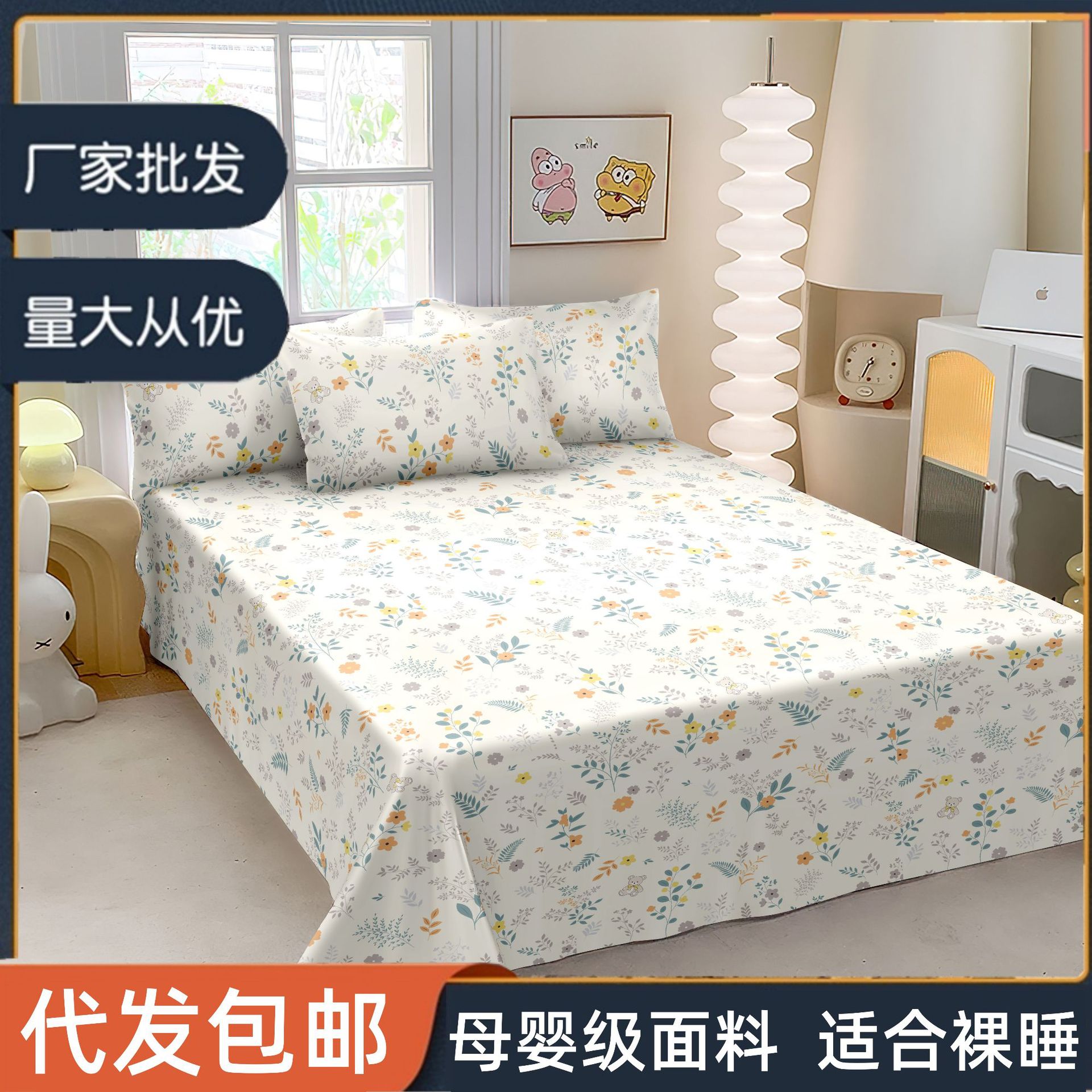 Ins単品水洗綿プリント単品シーツ磨毛学生寮アロエ綿一人二人シーツ卸売り