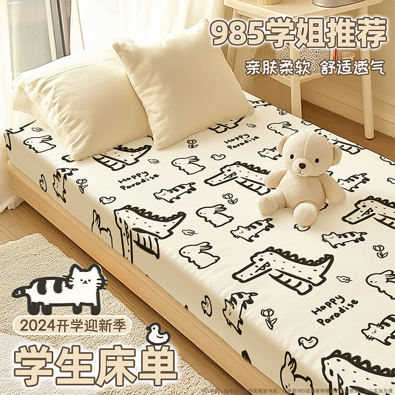 プリント柄家庭用ベッドシーツ単品 学生寮用ベッドシーツ 1.18m 起毛カンシーツ 女性向け卸売 洗える綿ベッドシーツ