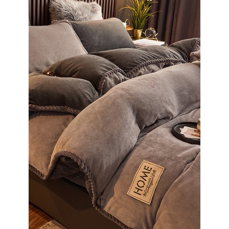 シンプルで厚手の起毛素材の4点セット 秋冬用100%シーツと掛け布団カバー 暖かい寝具3~4点セット 多用途