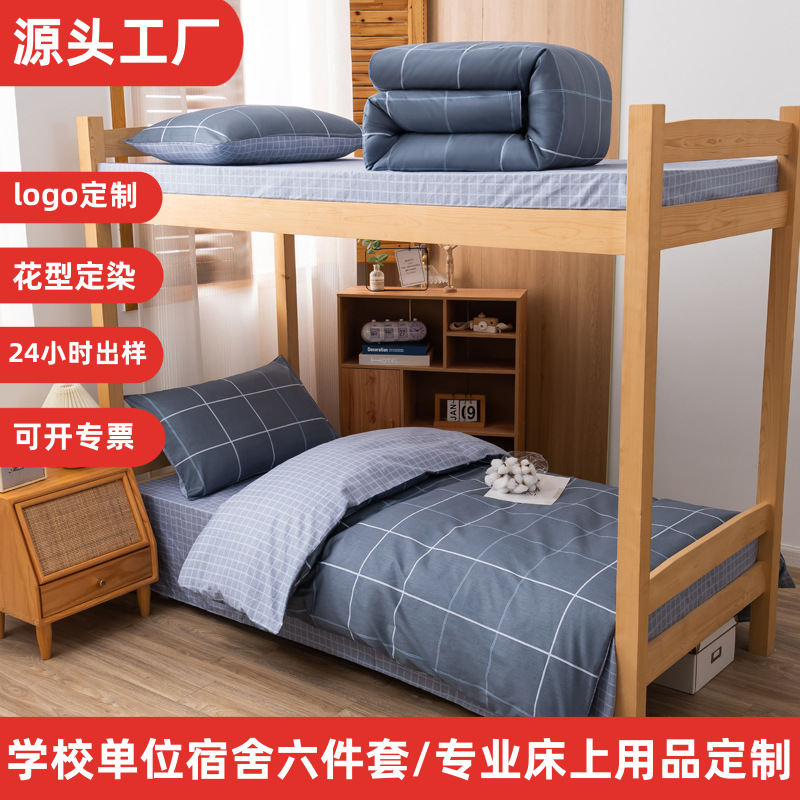 学生寮ベッド6点セット学校シングル寝室布団工場上下シーツカバー卸売り