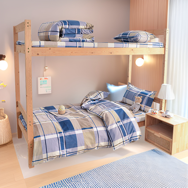 工場卸売 綿100% 3点セット 学生寮用6点セット 寝具セット シンプルな格子柄 純綿布団セット 寮用