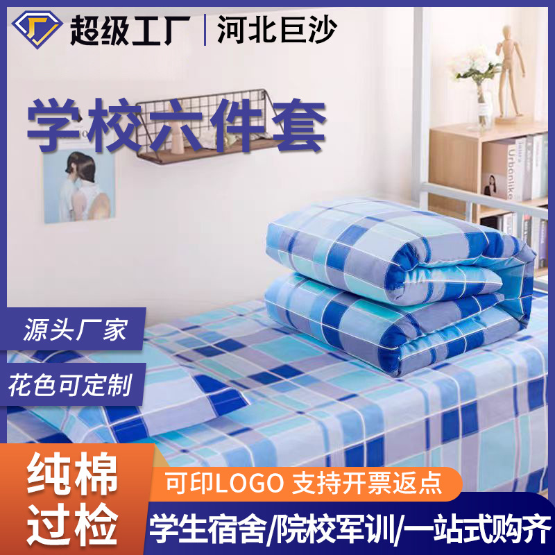 純綿学生寮六点セット純綿布団セット学校単位上下三点セットベッド用品卸売り