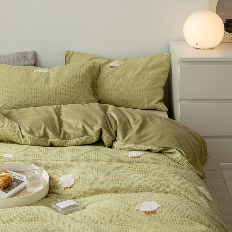 小清新アニメ風刺繍保温ベッド品高級感秋冬純綿磨毛四点セット