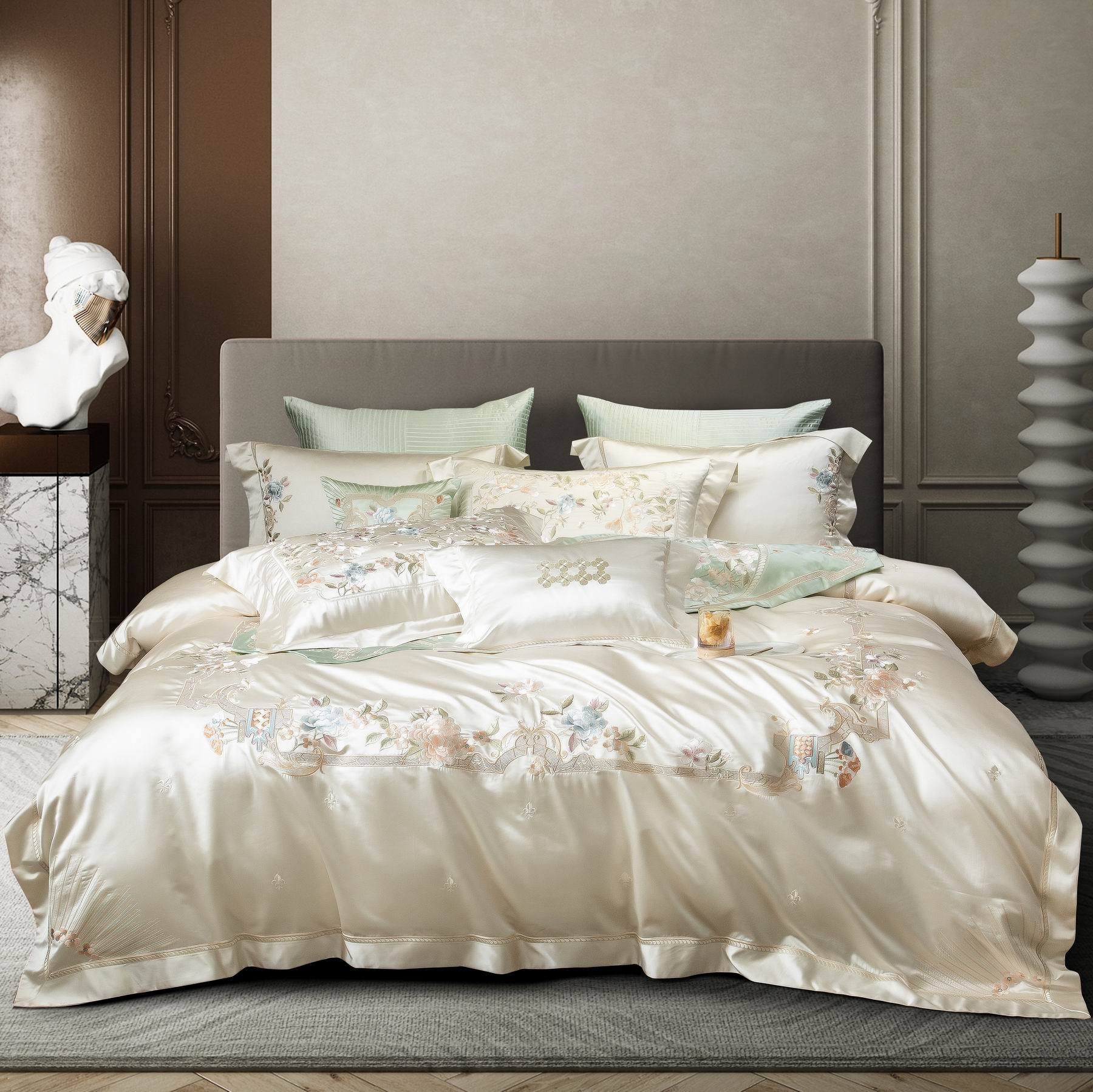 高級軽豪華田園新商品140sシルク綿新疆長絨綿刺繍ベッド4点セット