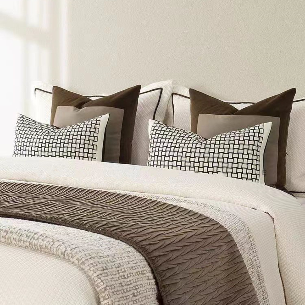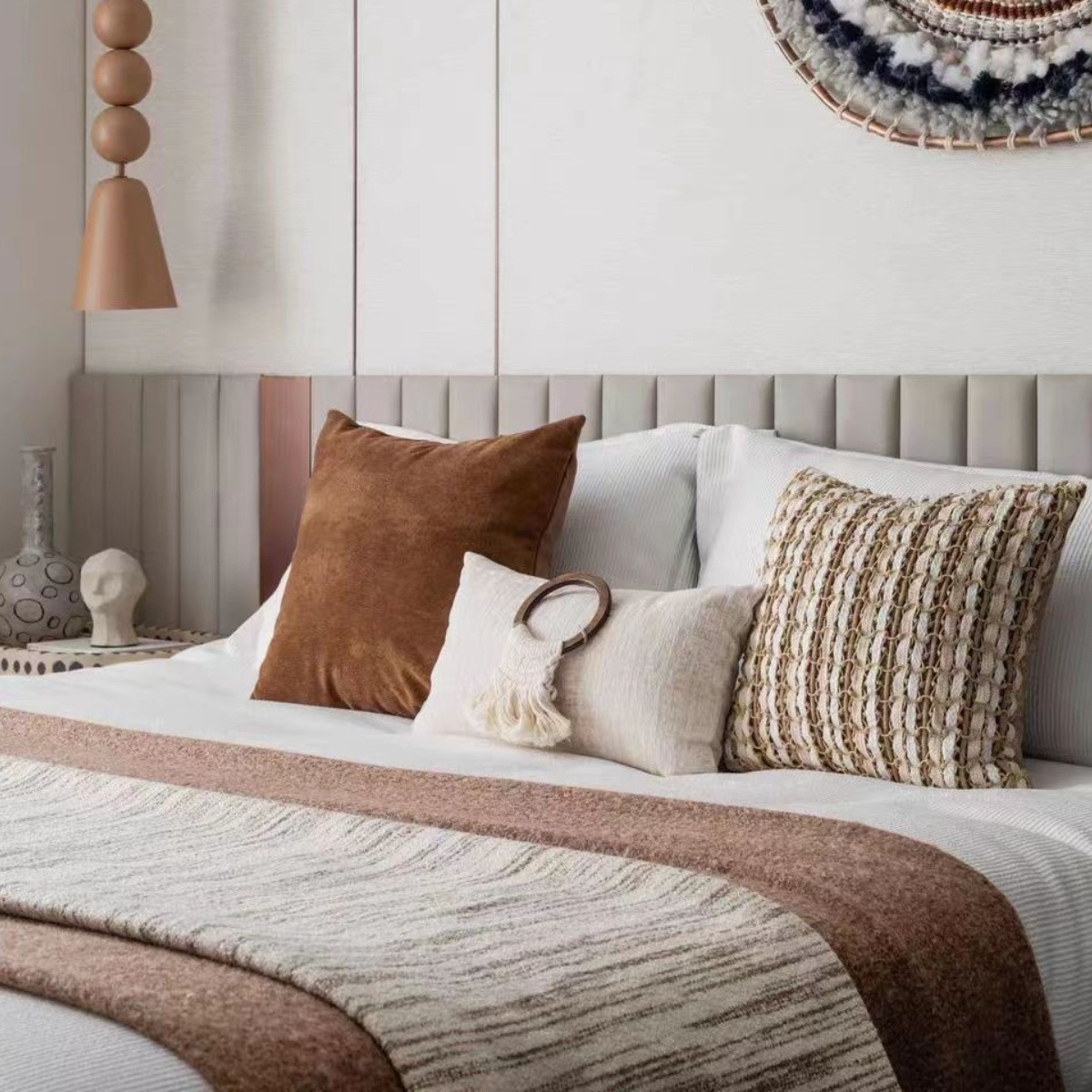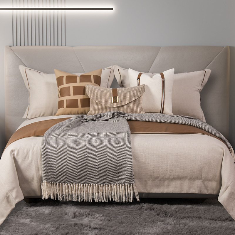 軽豪華現代シンプルなサンプルプレート間ベッド用品家具店展示室ソフト内装会社サンプルプレート室カレー色系ベッド用品