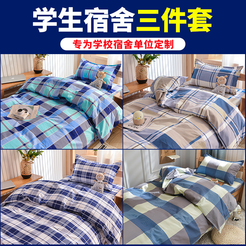 北京メーカー卸売り消防炎青布団カバー三点セットシングルベッド品寮上下敷一点代発