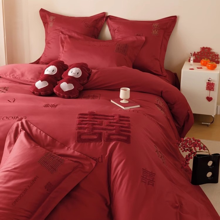 大紅綿結婚祝いの四点セットの綿刺繍結婚の多点セットのお祝いシーツはカバーして卸売りして共同購入します。