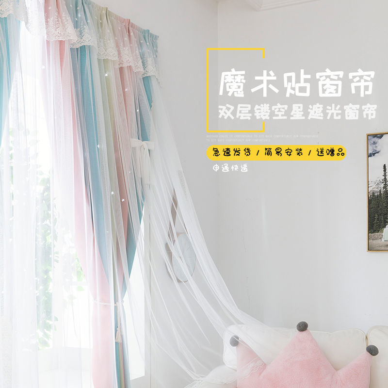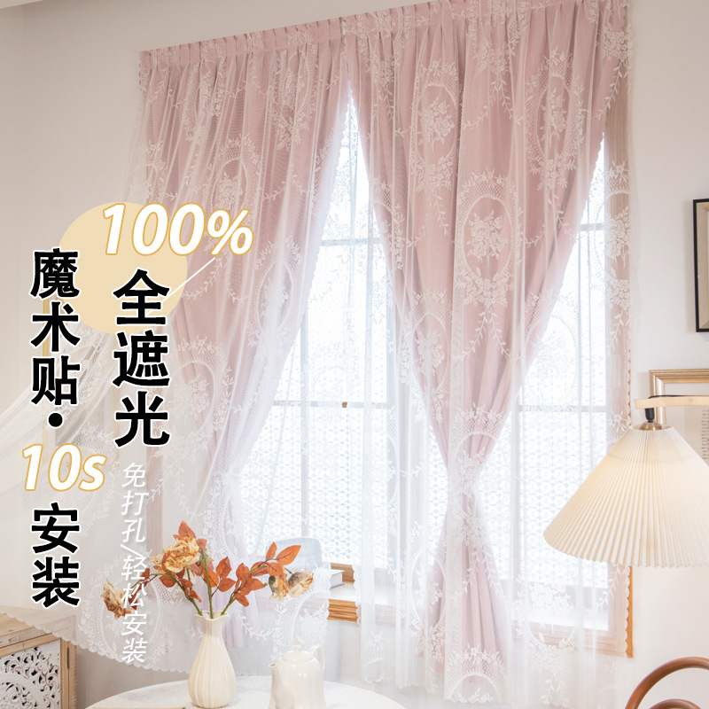 マジックテープ穴なし完成品遮光自己接着式家庭用布地プリンセスカーテン寝室遮光カーテン賃貸住宅