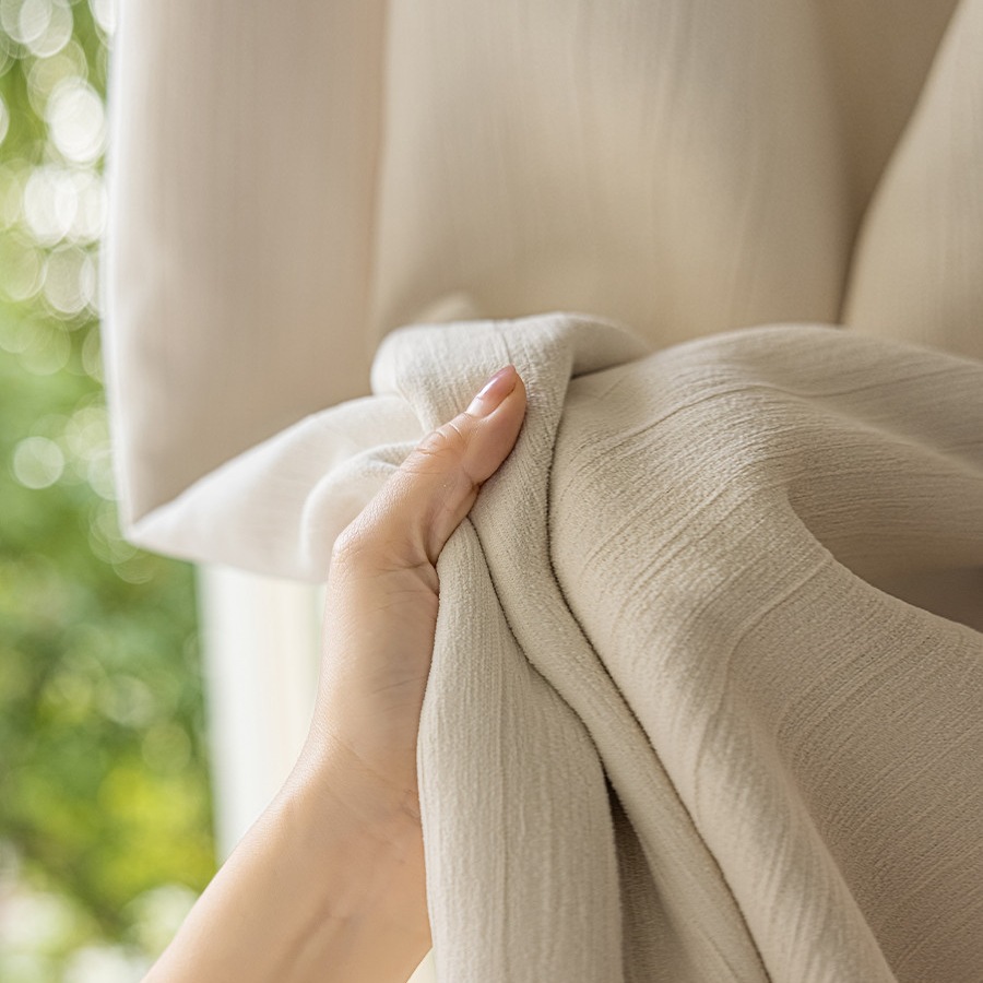 2025年の新型百合クラウン窓の紗素はシンプルで現代的な純色の光が透けない日本式亜麻色の紗のカーテンです。