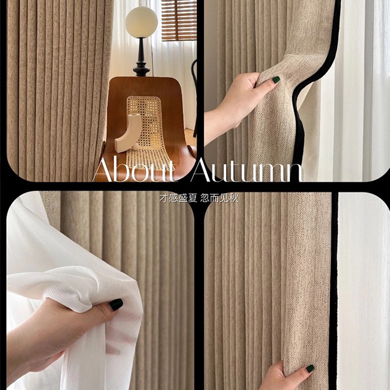 二層フレンチクリームスタイルベルクロ完全遮光カーテン2025新しいスタイルパンチフリーインストール寝室日焼け止めと断熱