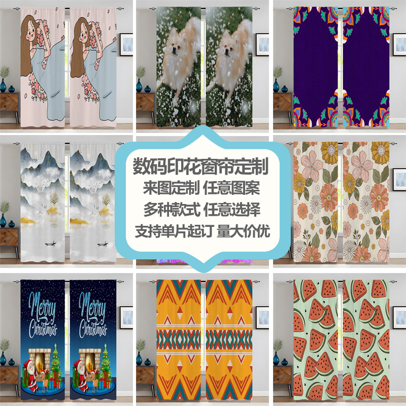 クロスボーダーデジタルプリントオーダーメードポリエステルカーテンリビングカーテン寝室遮光カーテン遮光赁贷住宅カーテン