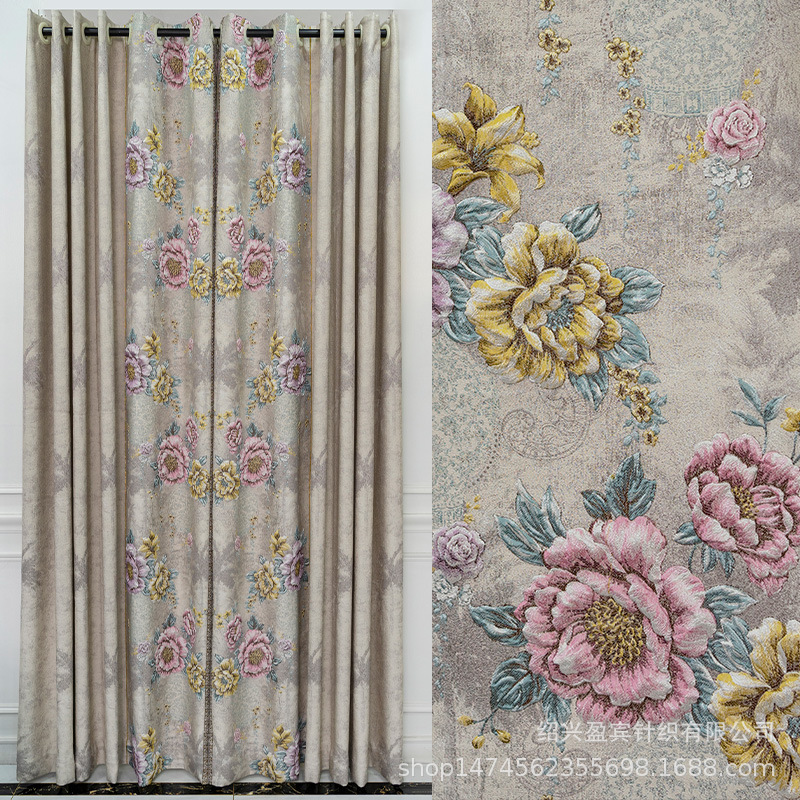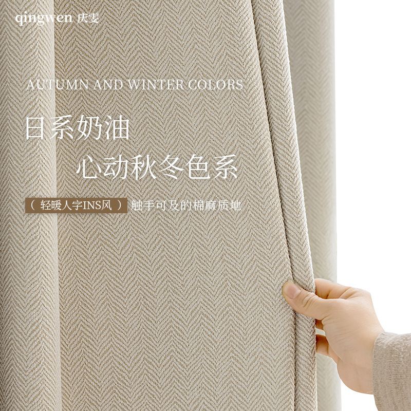 新しいフレンチクリームスタイルシェニール日焼け止め断熱肥厚遮光カーテン寝室リビングルーム出窓家全体柯橋