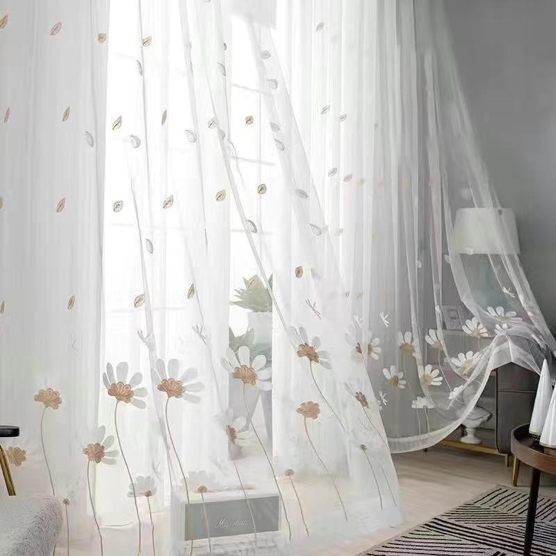 水溶性中空刺繍ガーゼカーテンバルコニーベッドルーム出窓完成カーテン透光性と不透明な白いガーゼライト高級シンプル