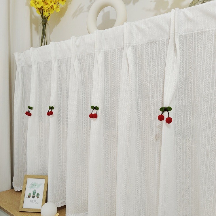 シンプルモダンな小さな新鮮なショートカーテンキャビネットカーテンゴミカーテン穴あけ不要のハーフカーテン無地カーテン