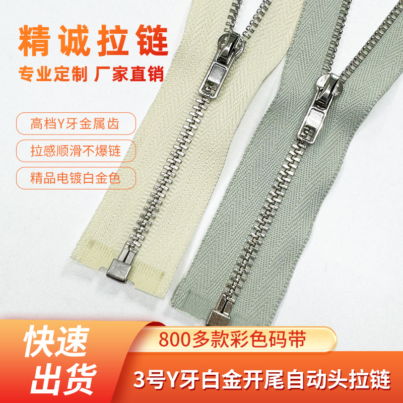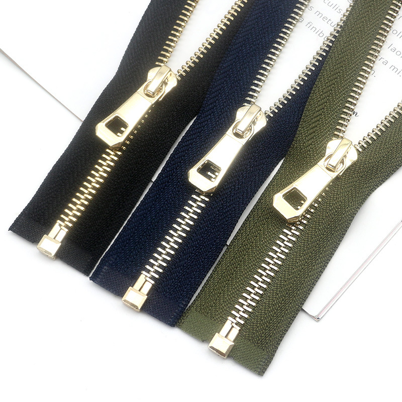 金属ファスナー3号開口浅金歯銅ファスナー服コートファスナーリングプルヘッドセルフロック現物卸売り