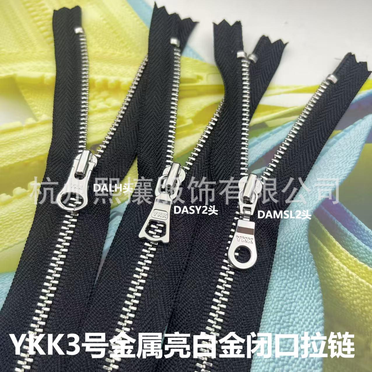 現物YKKファスナー3号金属亮白金亮銀閉口ファスナー黒布三種ファスナー15-30cm