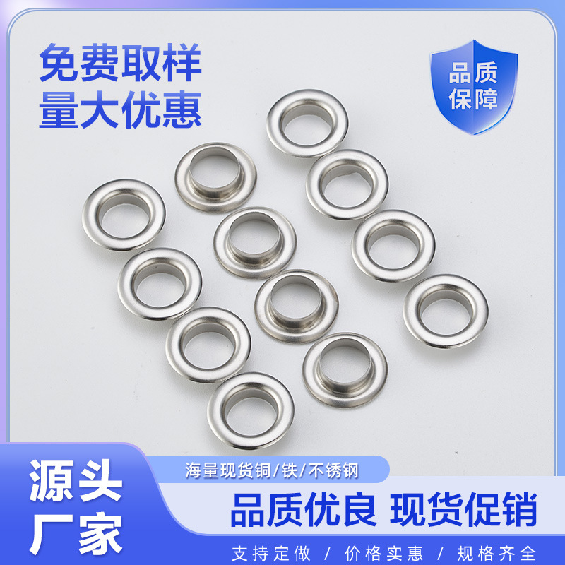 佛山ステンレス鋼メタルアイレットボタン、防錆鉄製平面電気メッキ銅スプレー塗装丸型エッジアイレットボタンメーカー