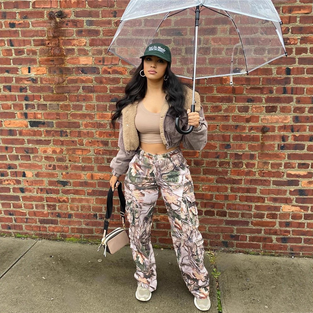 欧米の流行の束の足のゆったりした工装のズボンの女性insの博主の街は腰の薄いタイプの紙袋のズボンの広い足のズボンをたたきます。