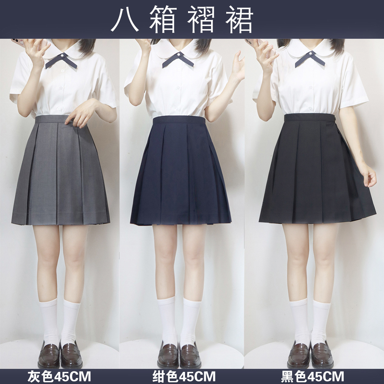 スポット卸売り八箱タック純色jkスカートスカート紺色基礎金タイ式制服学院風ギャルスカート